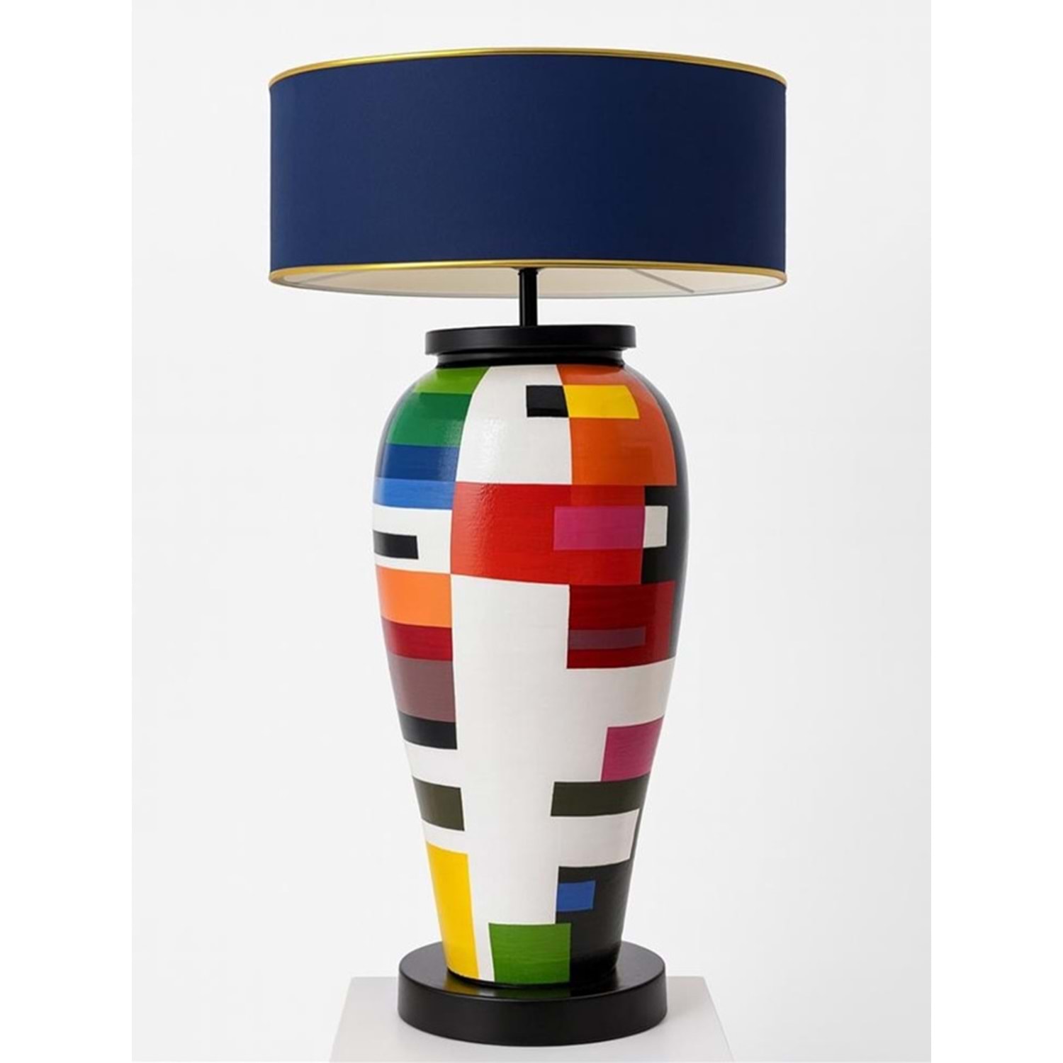 Siyah Çizgi Desenli Abajur 85 cm