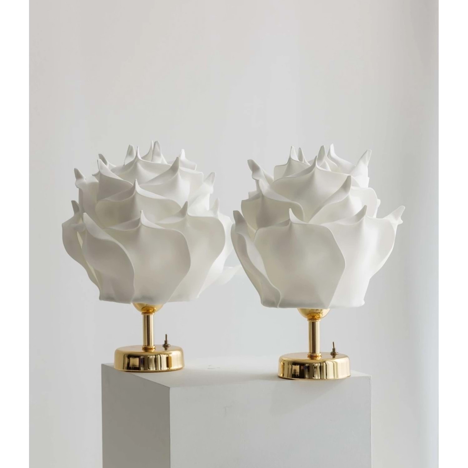 Beyaz Eva Gül Tasarım Kablosuz Masa Lambası - Alt Parlak Gold