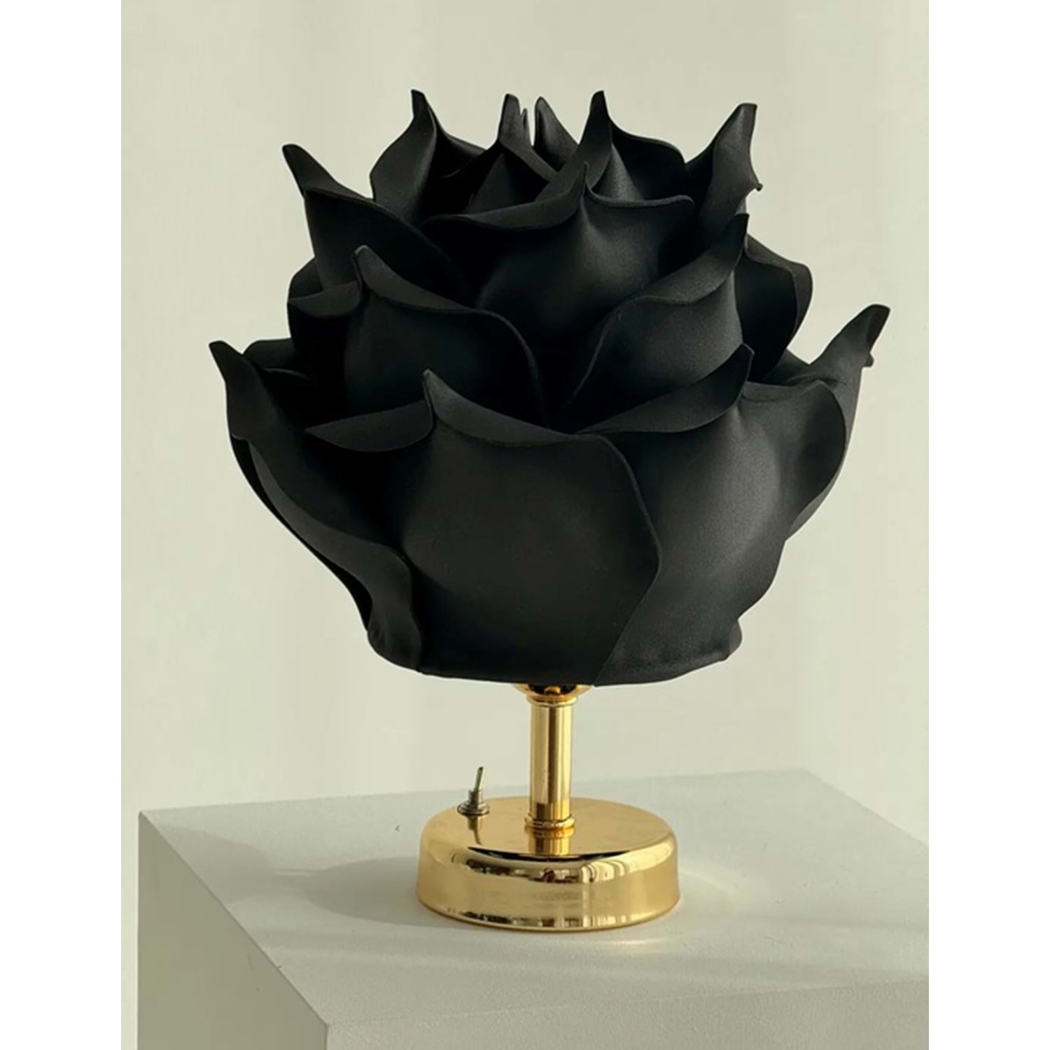 Siyah Eva Gül Tasarım Kablosuz Masa Lambası Gold