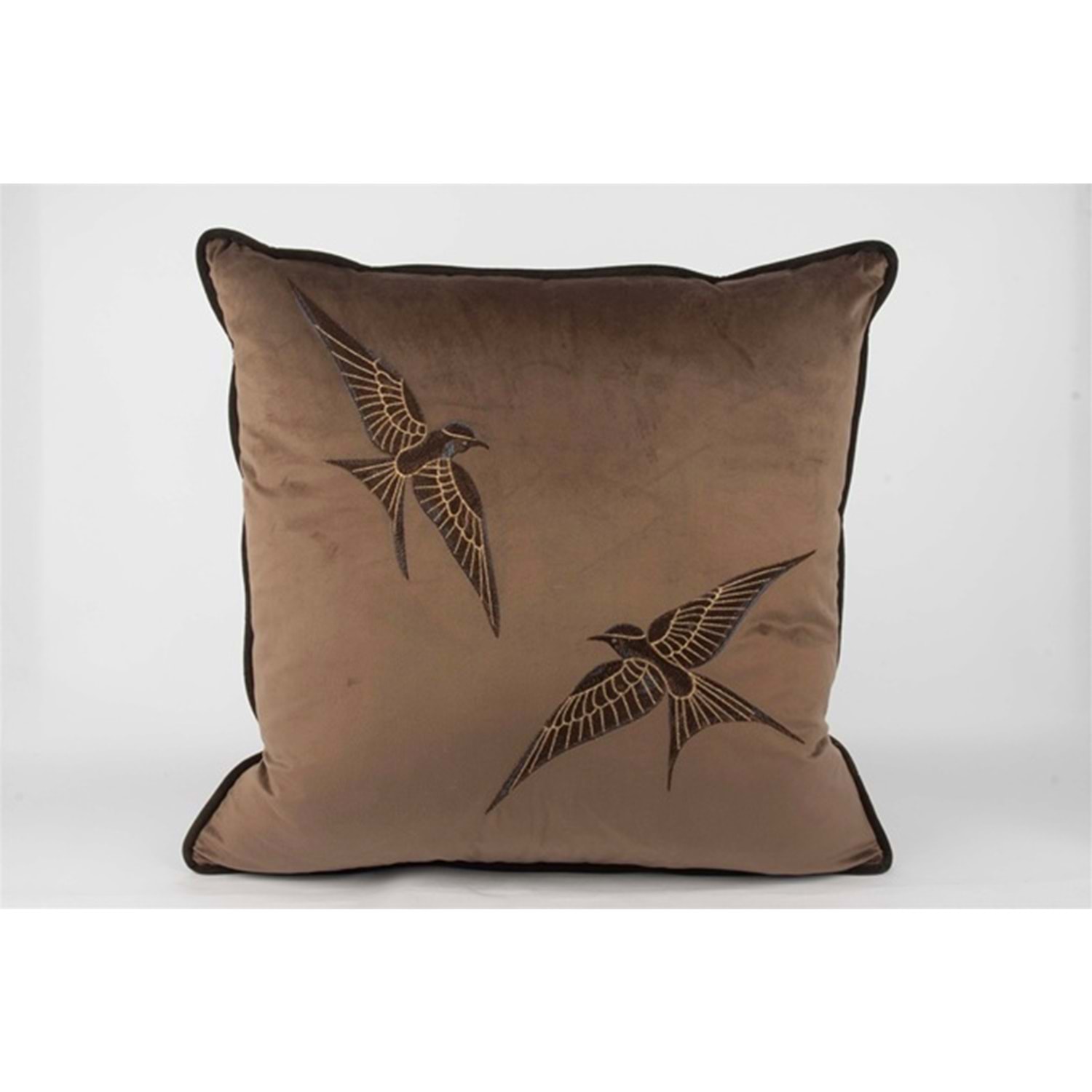 Isla Kahverengi Kadife iki Kuş 55x55 Kırlent