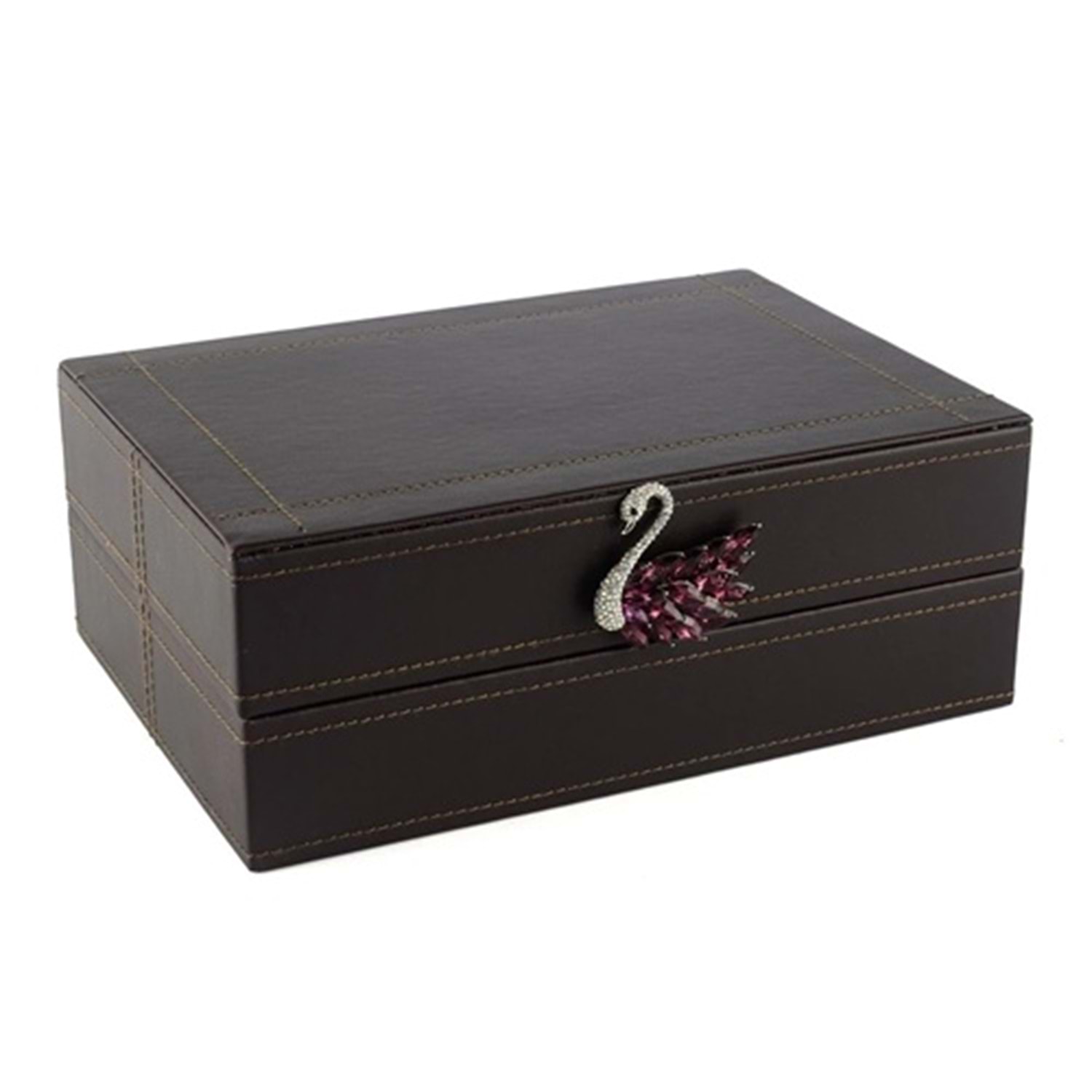 Kuğulu Mor Deri Kutu 26x18x10 cm