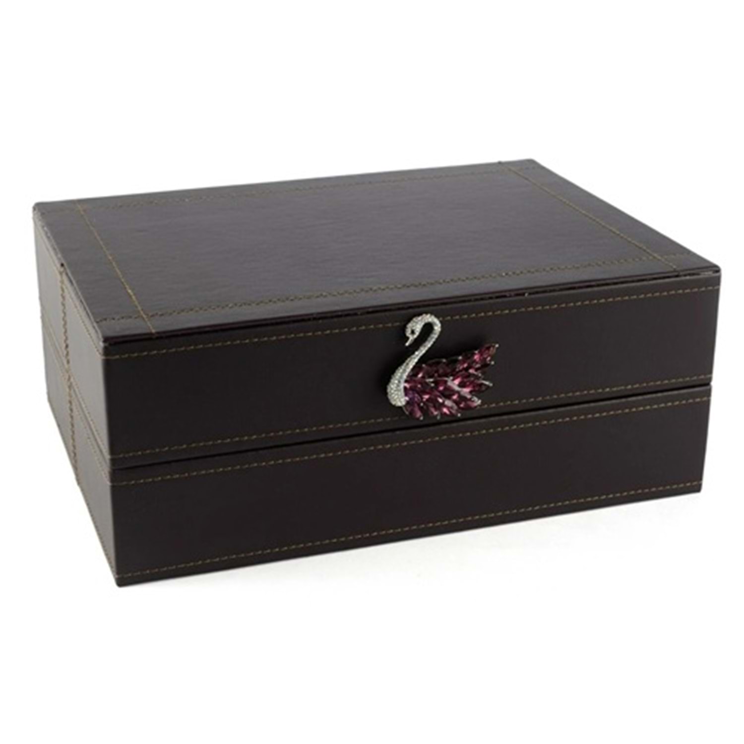 Kuğulu Mor Deri Kutu 30x22x12 cm