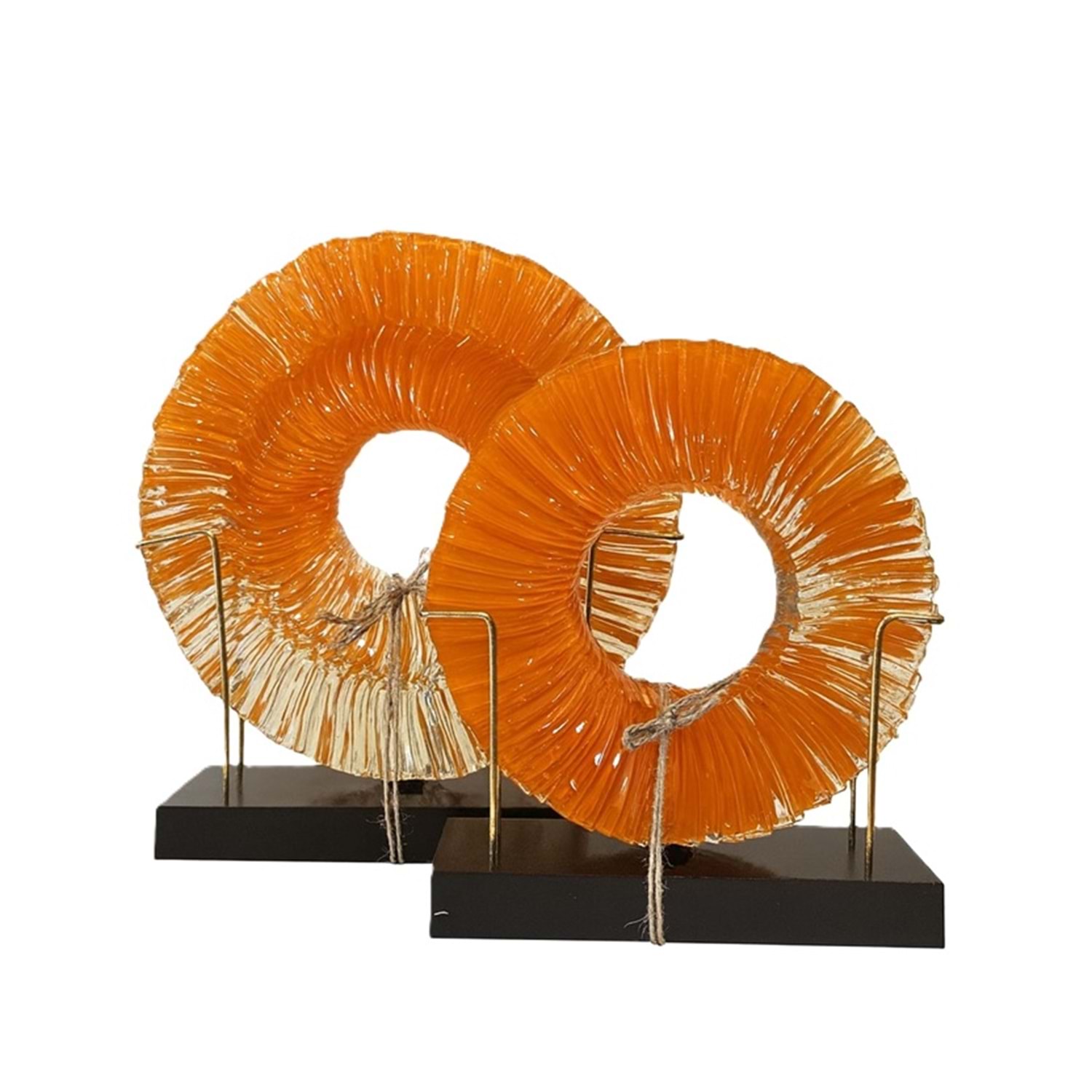 2 li Ahşap Kaide Cam Füzyon Şeffaf Turuncu