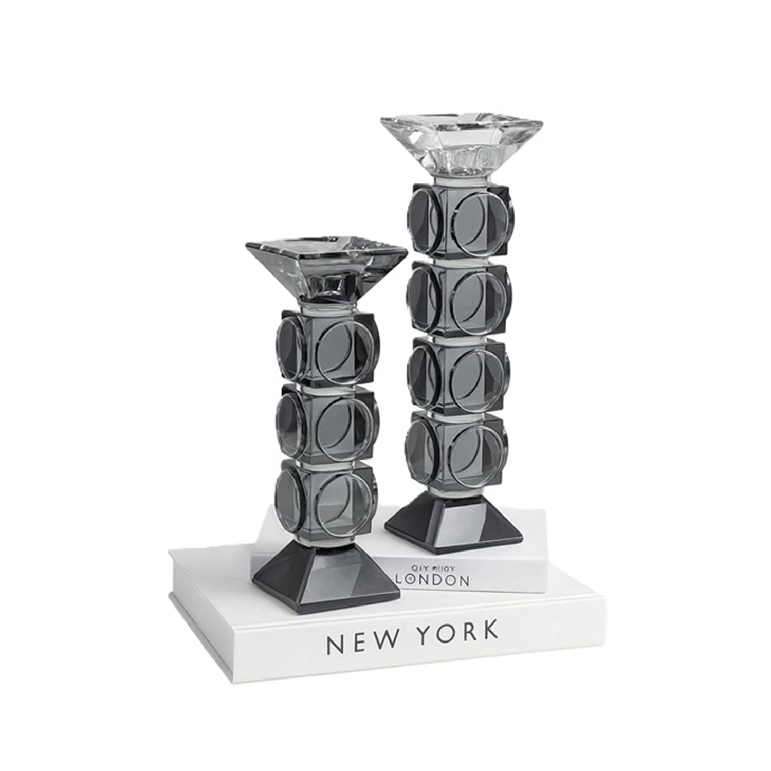 2 Li Yuvarlak Kristalli Lüks Şamdan Füme