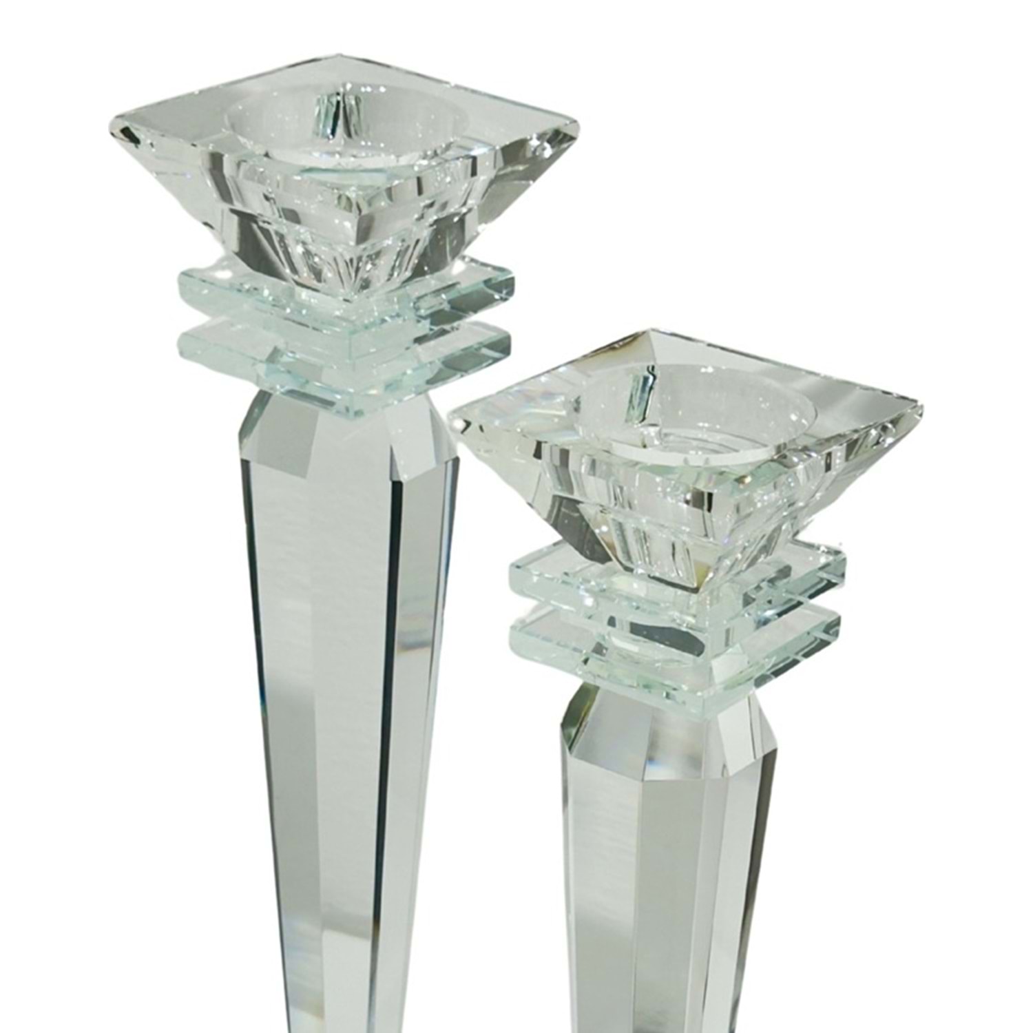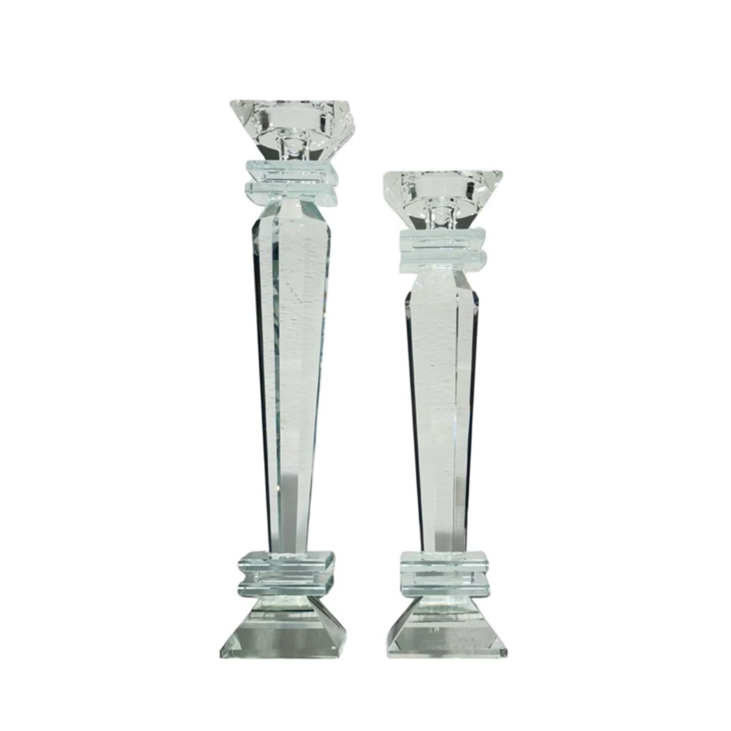 Kristal Köşeli Şeffaf Mumluk 9x34 cm