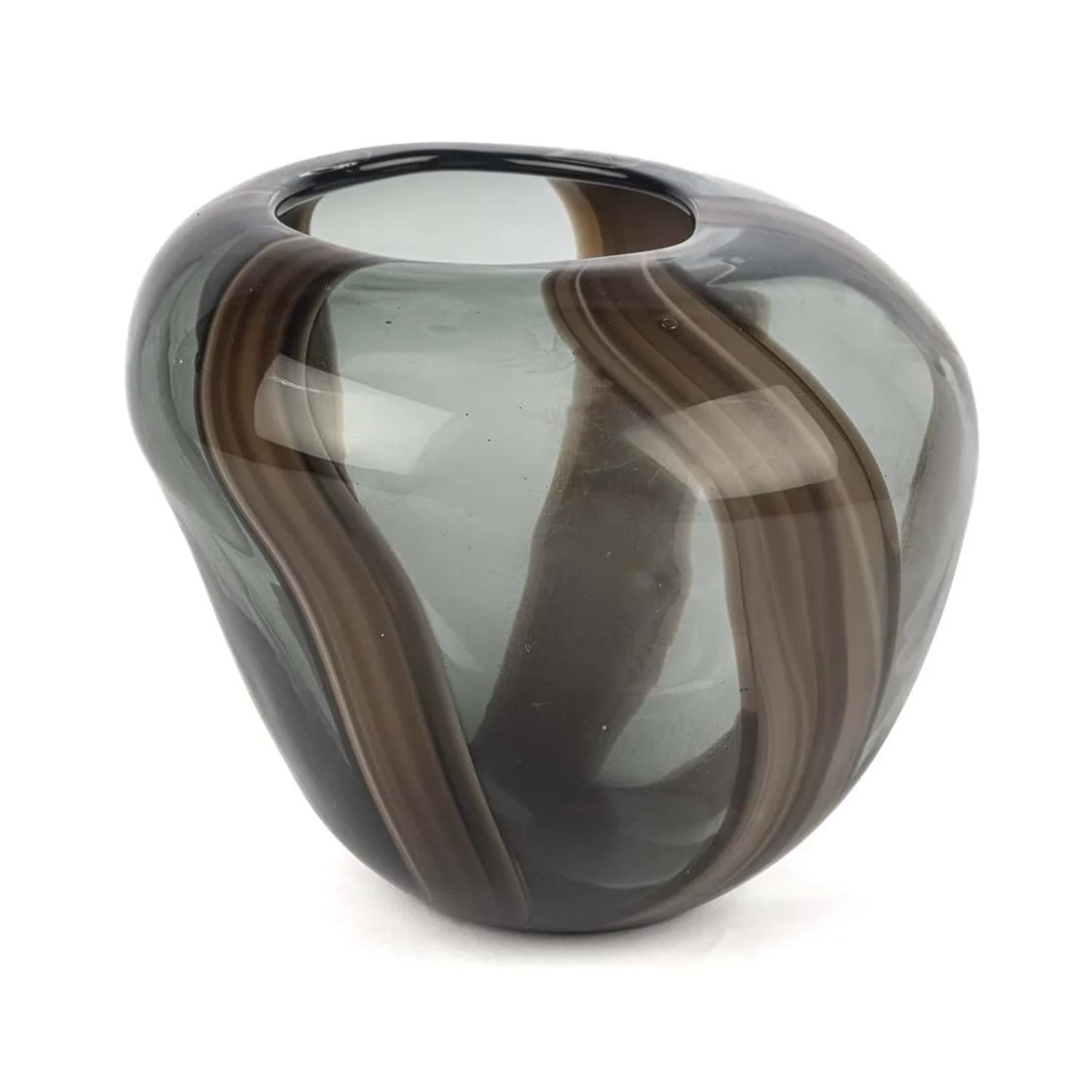 Kahve Çizgili Füme Cam Vazo 22x20x19 cm