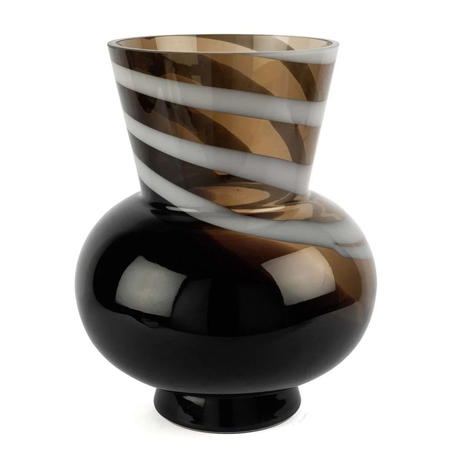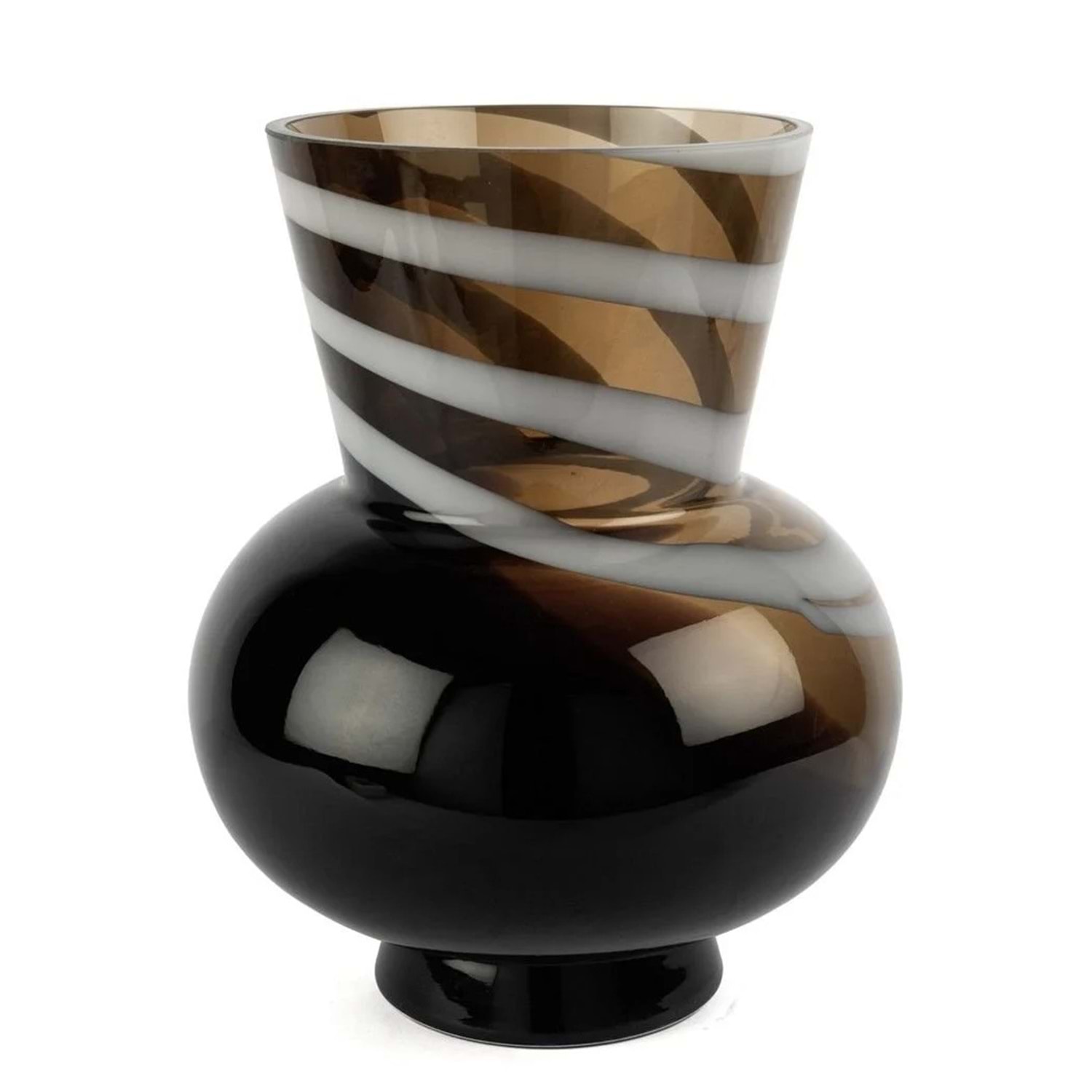 Kahverengi Beyaz Şeritli Cam Vazo 32x28 cm