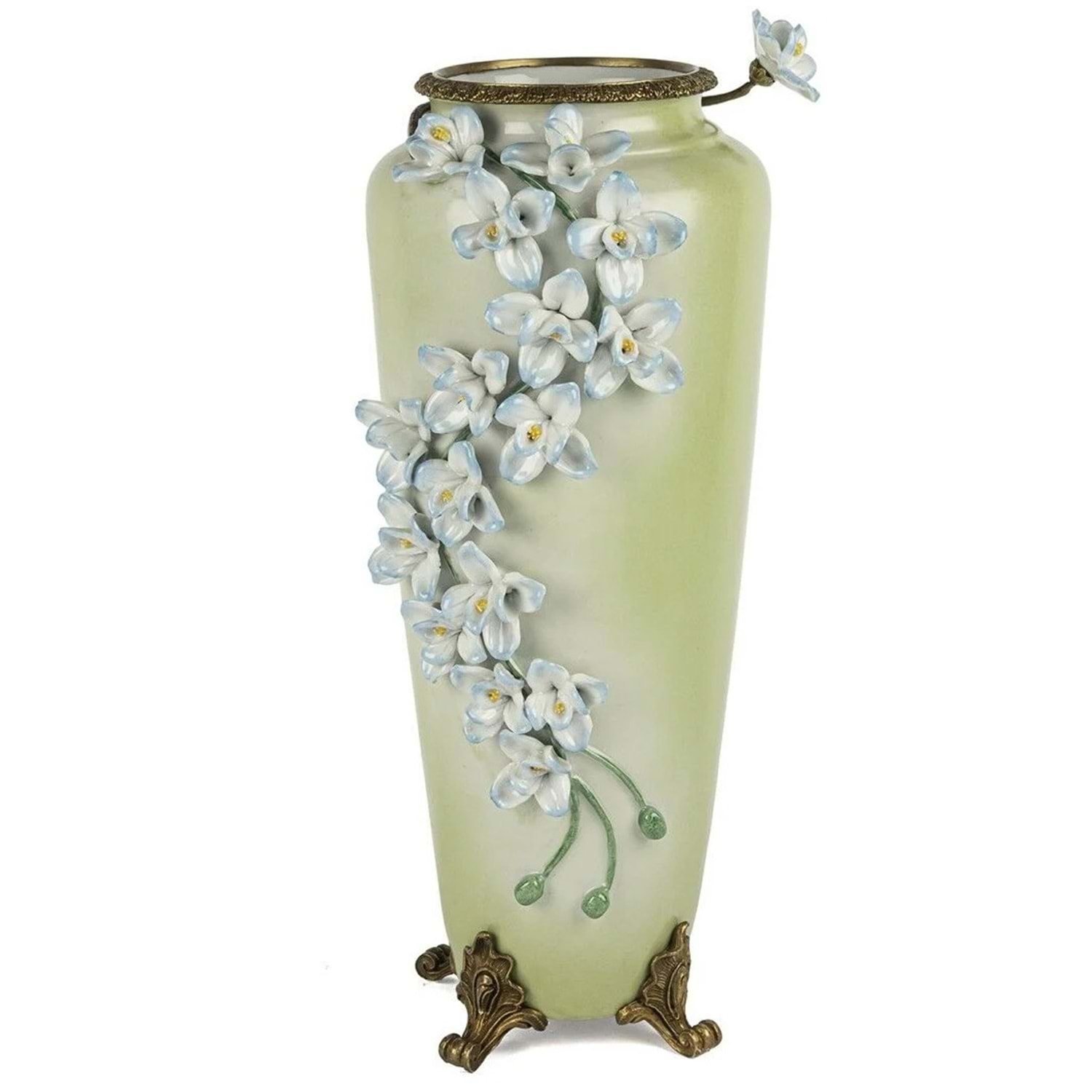 Yeşil Kabartma Çiçekli Vazo 22x47 cm